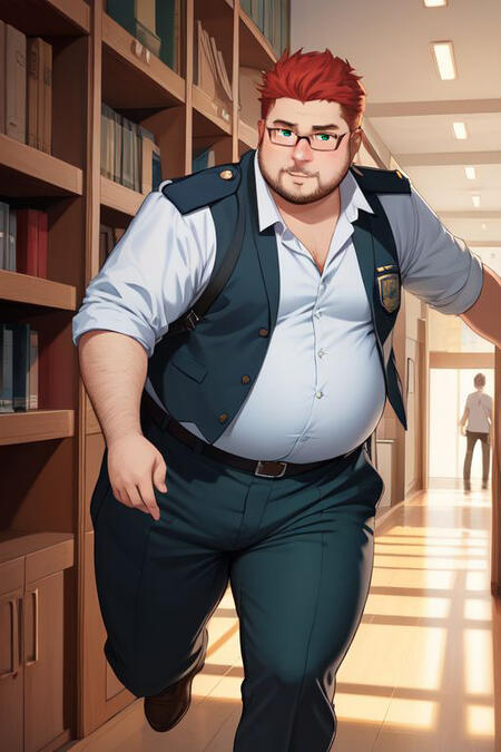 Otis is a member of the Harker's College security team. He is a gentle giant with a penchant for fast food. He is always trying to enforce the college rules and ensure chubby justice. He is head over heels in love with Polly, the lady from the cafeteria, but doesn't dare say anything to her. Will you help him on his path to love, or maybe try to win his heart yourself?
